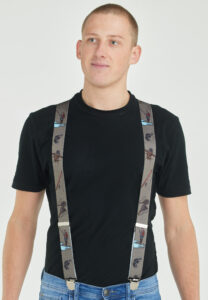 Bretels worden bevestigd aan de ceintuur van de pantalon, met behulp van clips of patten (leren lussen).