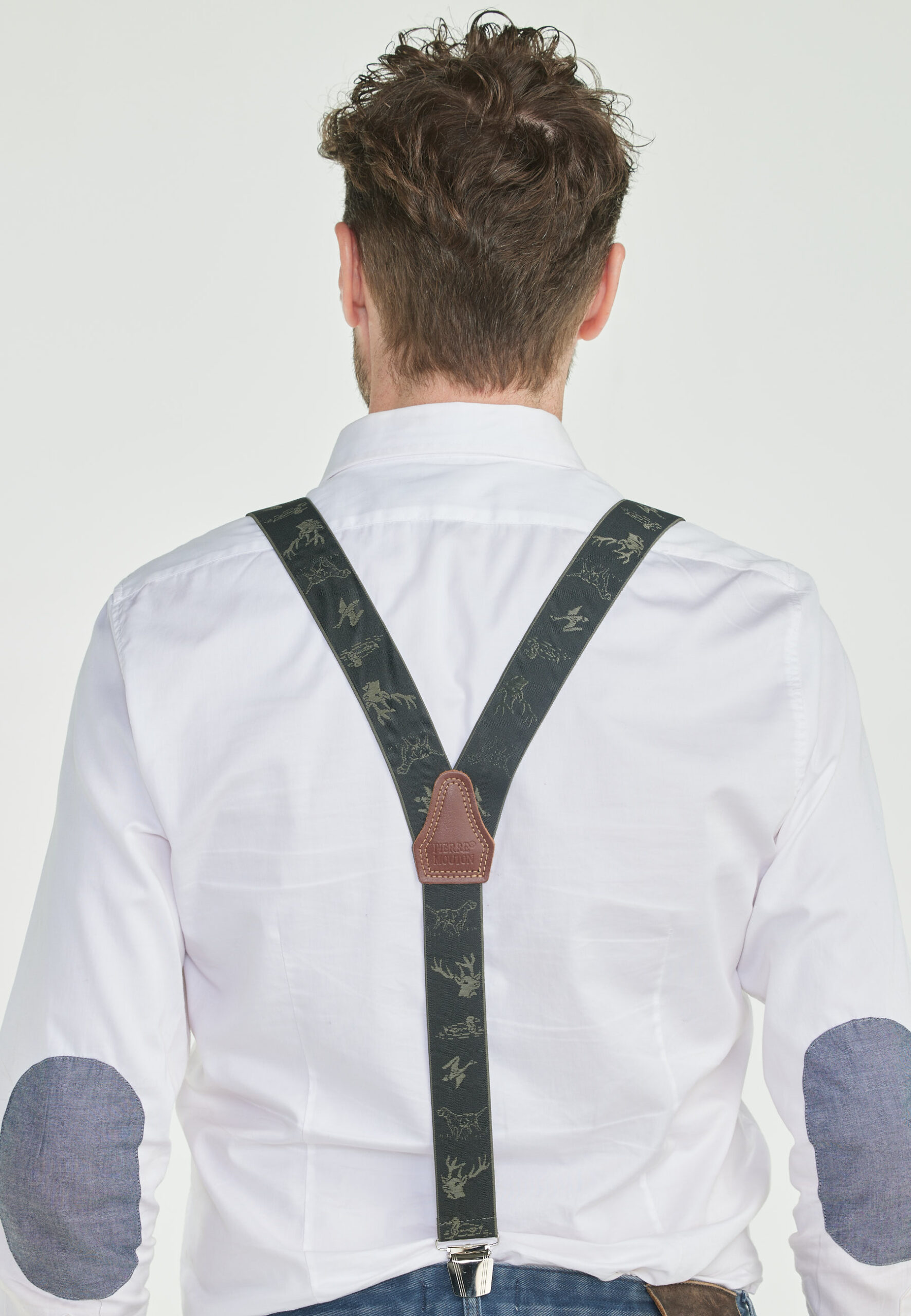 Deze Jachtbretel bretel is speciaal gemaakt voor natuurliefhebbers en jagers. Een chique uitstraling met prachtige hertenpatroon. Het rugstuk is voorzien van 100% Rundleer, en een zilverkleurige clip.