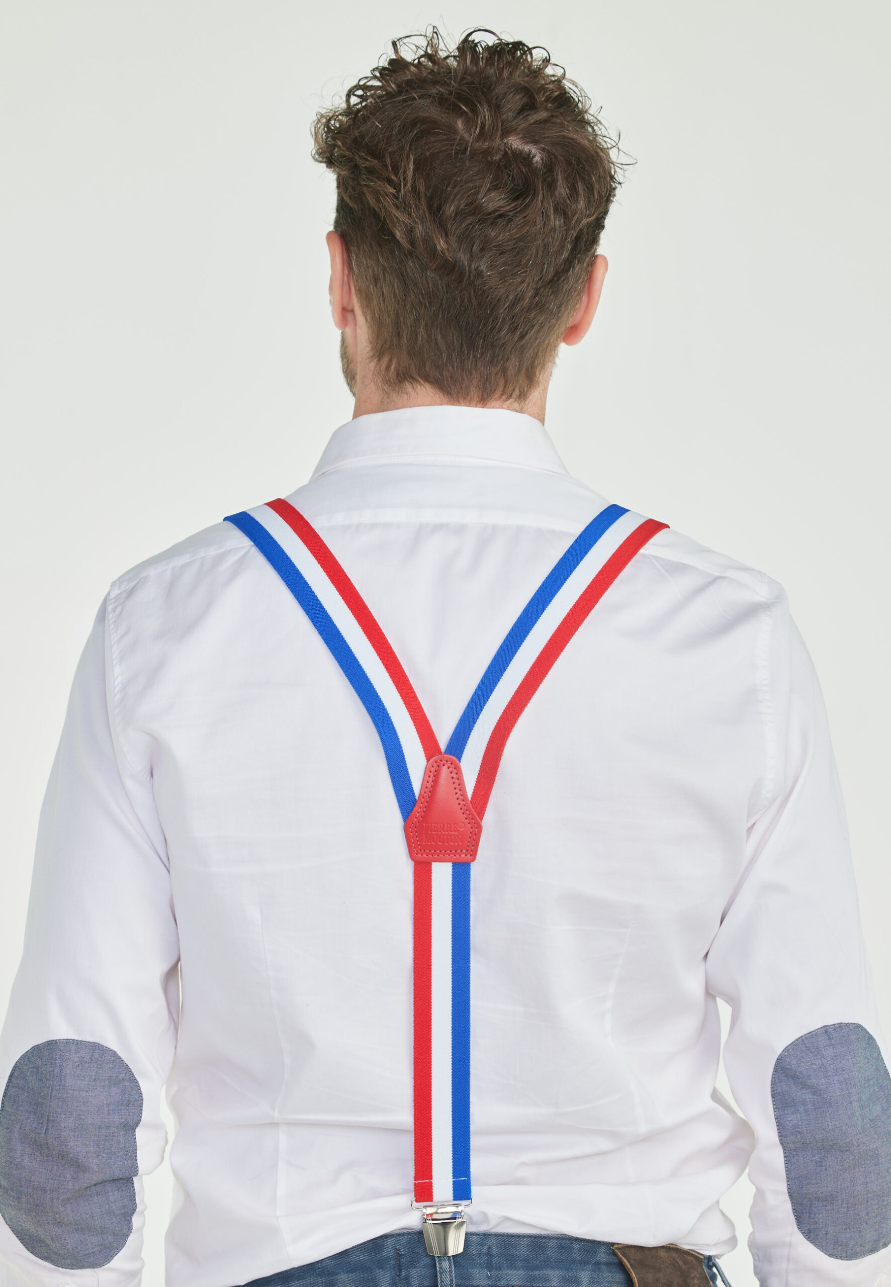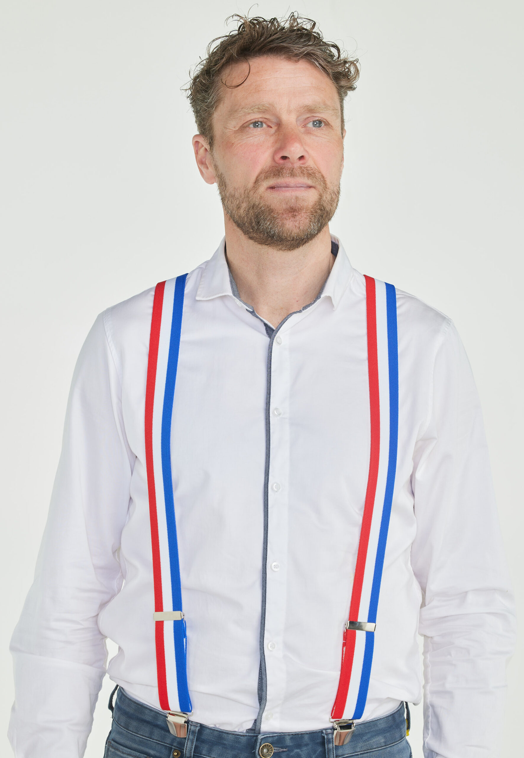 Gemaakt van sterk en dik bretel-elastiek met stevige clips. Twentse kwaliteit ondergedompeld in de Nederlandse kleuren! Laat de Leeuw niet in z’n hempie staan, maar draag er een bretel over! Verkrijgbaar in 120cm en XL140cm. Bovendien keuze uit 3 of 4 clips!