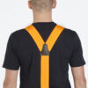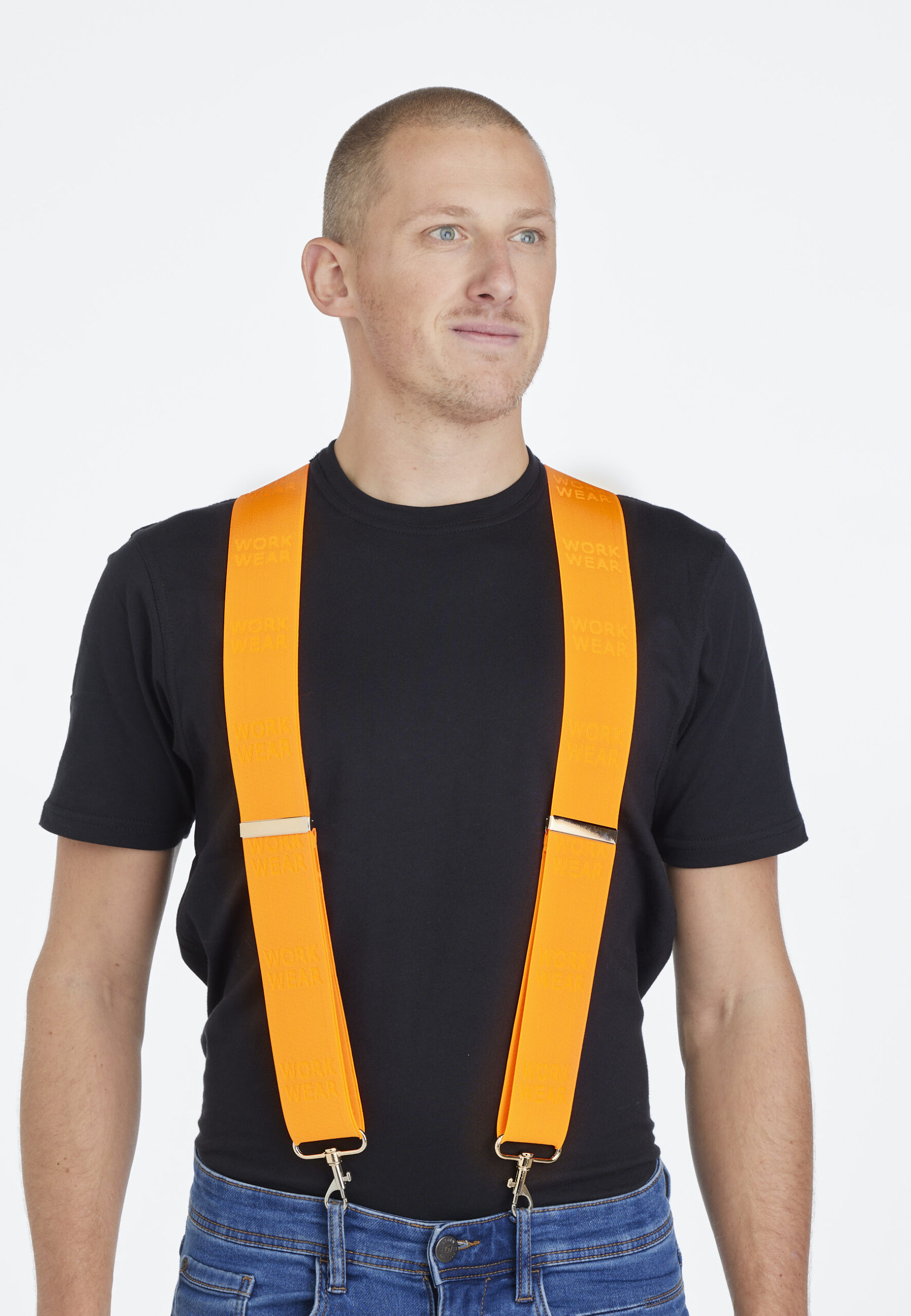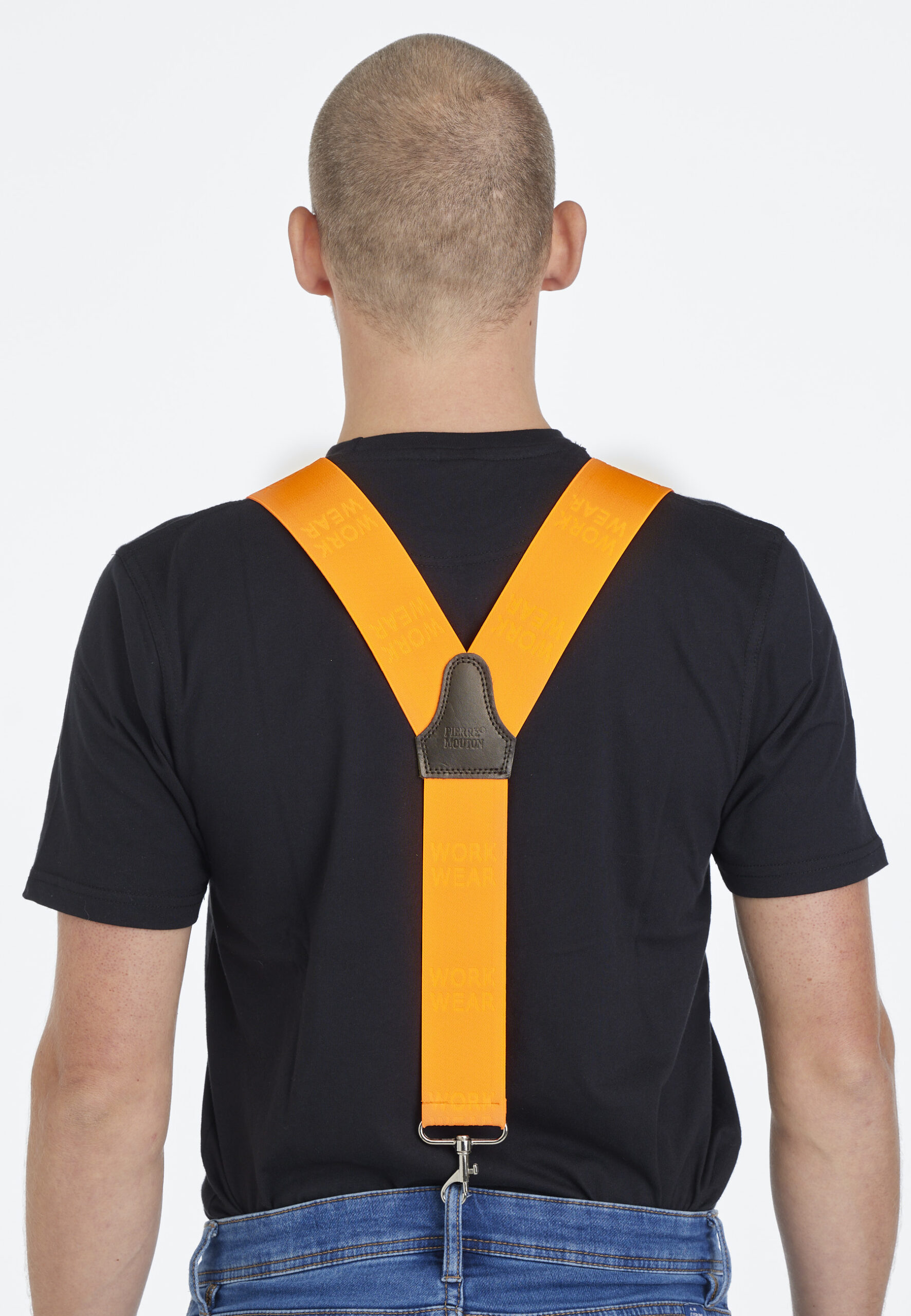 Een 50mm brede bretel met stevig werkbretel-elastiek. Voorzien van een leder rugstukje en keuze uit clips of haken! De clips kunnen op de broekband worden bevestigd en de haken aan de lussen van de broek.